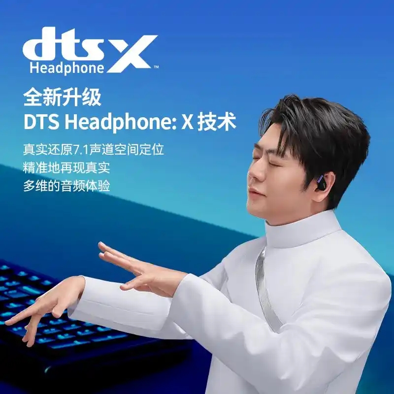 耳机的音质表现同样令人震撼,ARC 5游戏Plus版是全球首个同时获得杜比认证、THX认证与DTS加持的开放式耳机。THX Spatial Audio 确保了影院级的声音还原度,DTS Headphone:X 则真实还原了7.1声道,构建出精准的360°环绕声场。配合杜比音效带头部跟踪技术,实现了“声随头动”的沉浸效果,让脚步声、换弹声、爆炸式的方向与距离都清晰可辨,真正做到“听声辨位”,在游戏对局中先发制人。