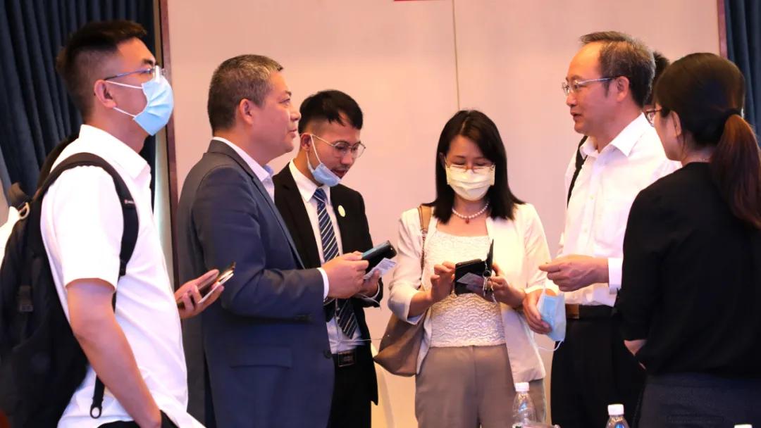 与会嘉宾在洽谈区与吴总交流