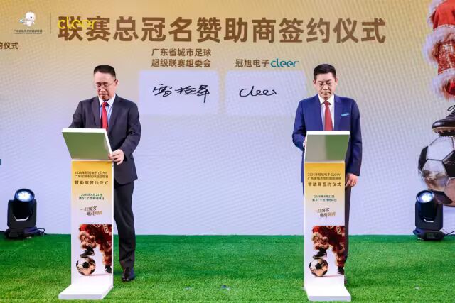 此次活动创新性的将广东本土最高水平的城市足球赛事签约仪式搬进冠旭电子(Cleer),集绿色办赛、科技新品、低碳传播、城区赋能于一体。