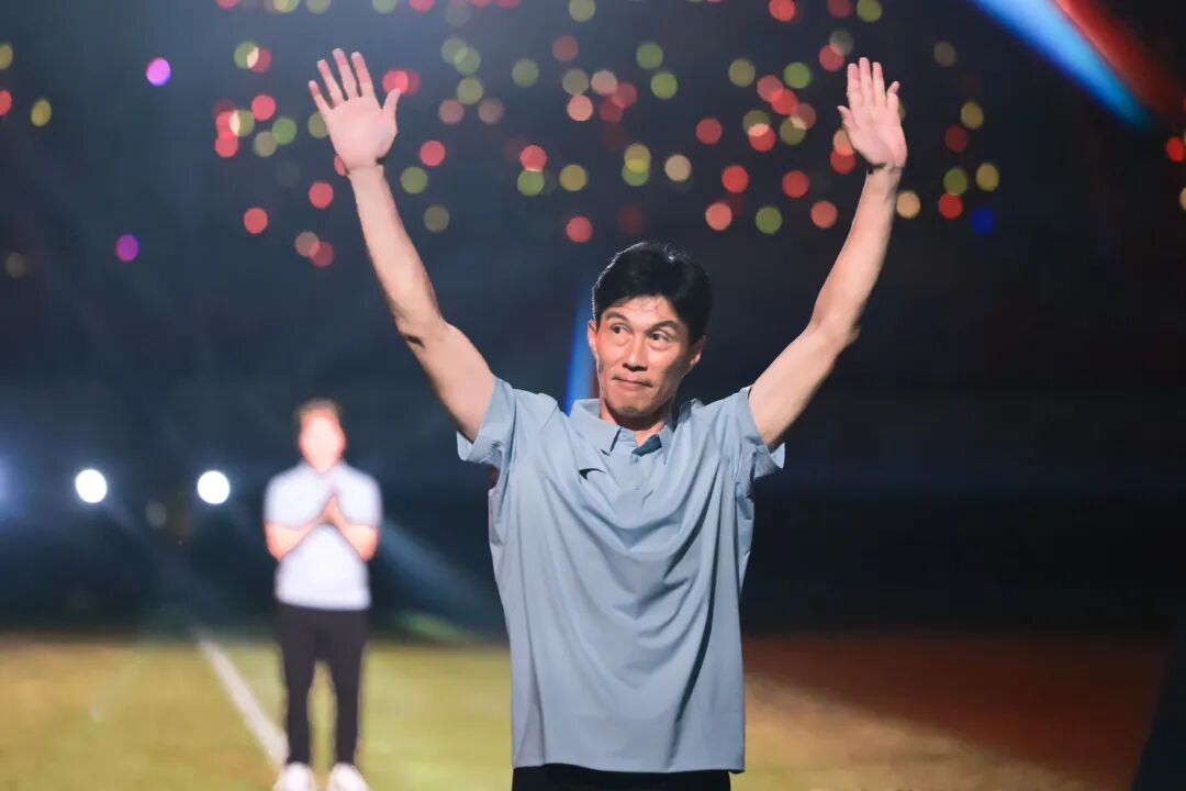 南派足球不同时代的五位代表容志行、欧伟庭、麦超,区楚良,卢琳陆续亮相,五位南粤足球的代表将一只足球传递到球场中圈的少年脚下,象征着南粤足球的代际传承,“志行风格”的精神赓续。